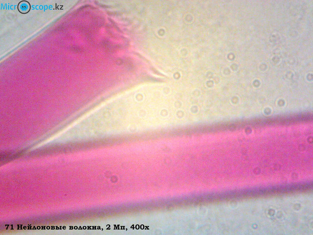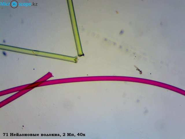 В отличие от волокон хлопка, нейлоновые волокна никогда не встречались в природе. Их синтезируют в химических лабораториях. Обратите внимание, насколько ровные края у каждого из волокон. Искусственные волокна имеют ряд неоспоримых преимуществ. Во-первых, их легко получить, а значит, они дешевле при сохранении того же качества, что и натуральные материалы. Кроме того, искусственные волокна намного прочнее. Из недостатков можно отметить, что из-за своих гладких стенок искусственные волокна не сохраняют тепло и не задерживают влагу, поэтому чаще всего их используют как летнюю одежду, делая ее из смешанных тканей, куда входят и искусственные, и натуральные волокна.